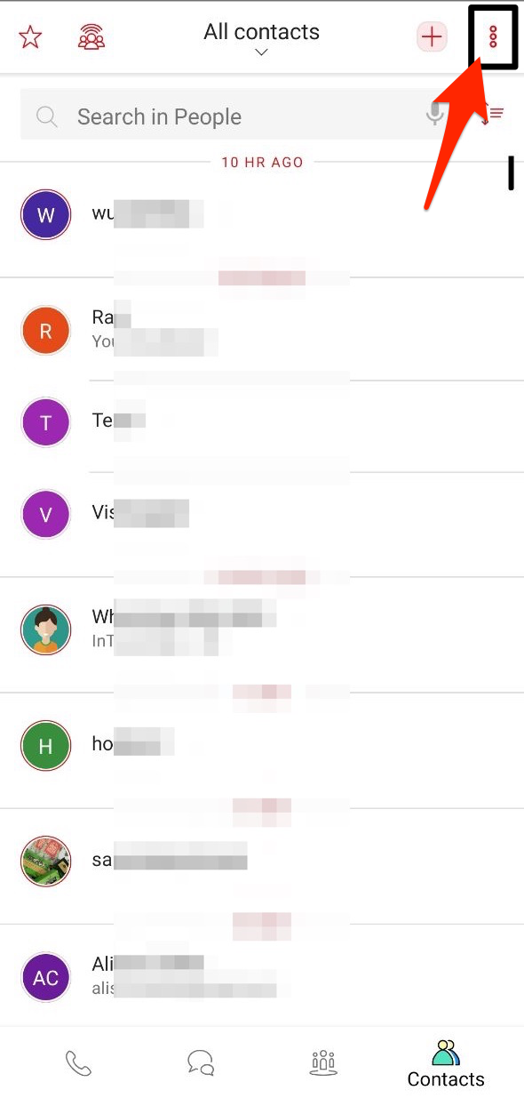 Step 1 - Open InTouchApp on your phone and select the Contacts tab at the bottom bar.