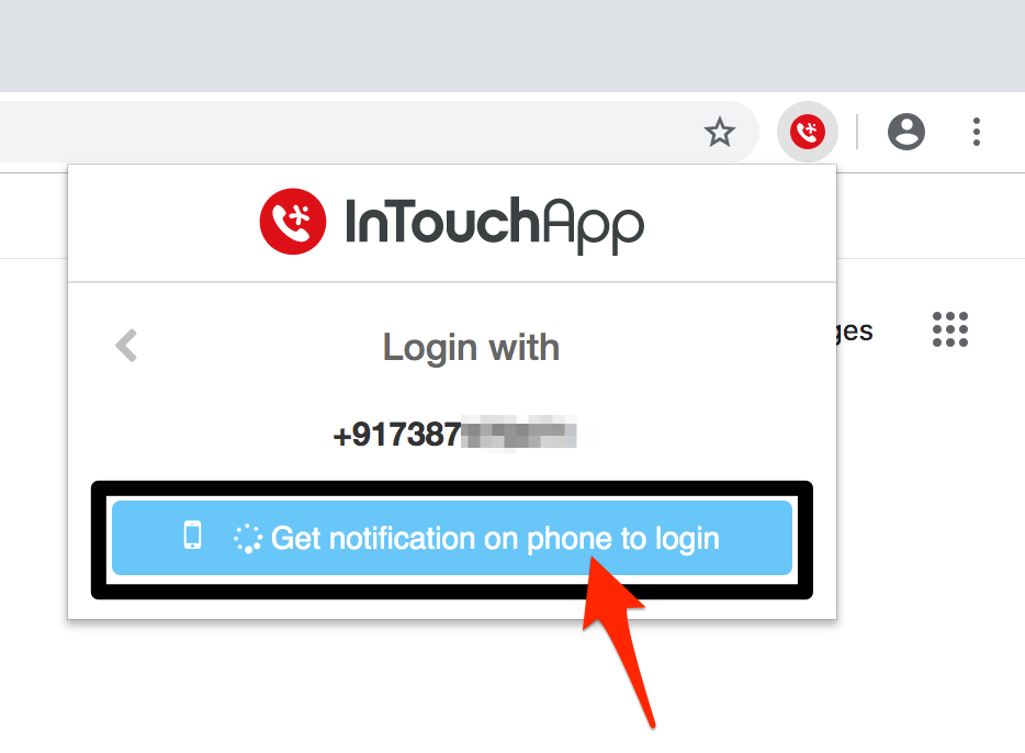 Step 2: Click on Get notification on phone to login and you will receive a notification on InTouchApp on your phone.