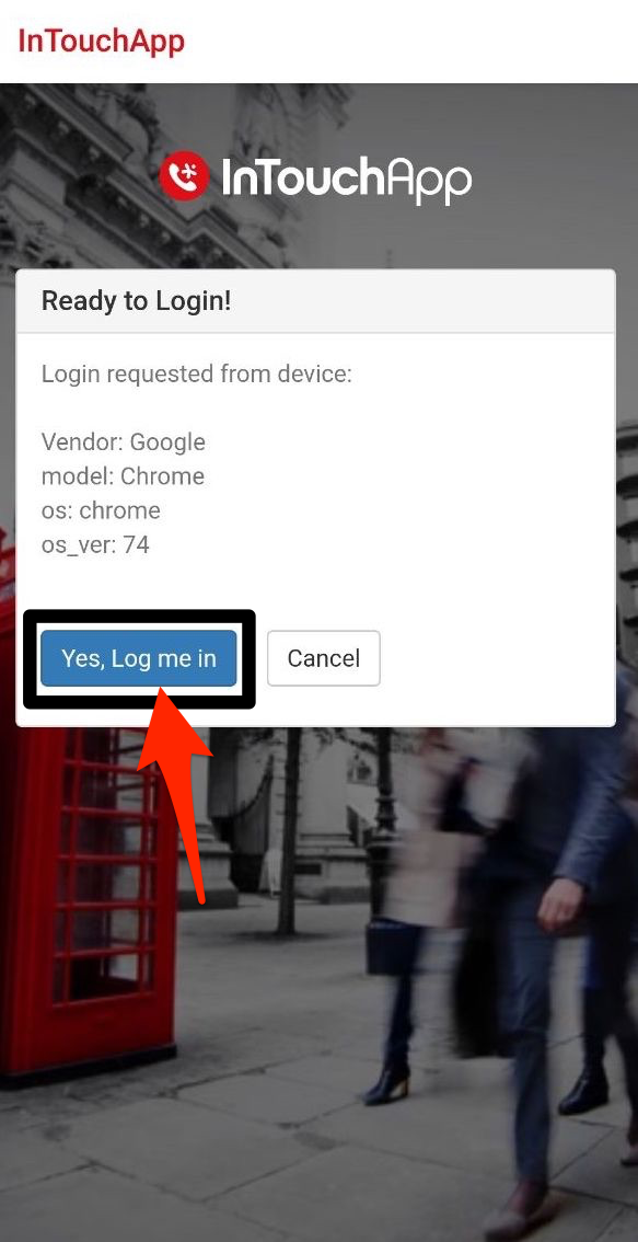 Step 4 - Click on the InTouchApp notification received on your registered number/phone to verify > Select Yes, Log me in and it will refresh automatically and you will be successfully logged-in).